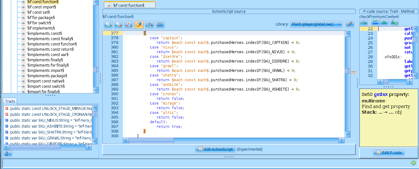 Pues obviamente como decompilador empleé ffdec. También funciona como un debugger usando un emulador pero me limité a hacer solo análisis estático.